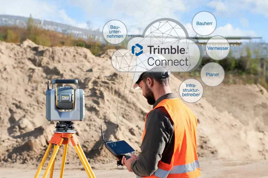 Es ist eines der zentralen Entwicklungsprojekte vom Technologieanbieter Trimble in den vergangenen Jahren: Die Entwicklung von Trimble Connect, einer cloudbasierten Datenumgebung und Plattform für effiziente Zusammenarbeit, die die reibungslose Datensynchronisation zwischen Feld und Büro und umgekehrt sicherstellt. Im Zusammenspiel mit der bekannten Feldsoftware Trimble Access können so 3D-Modelle wie z.B. IFC-Dateien, aber auch Daten wie Fixpunkte, Katasterdaten, CAD-Files direkt im Feld genutzt werden. Für den Vermesser eine deutliche Arbeitserleichterung, vorbei sind die Zeiten von USB-Sticks oder Anwendungen wie Dropbox, da die Anwendung auch als sicherer und zuverlässiger Datenspeicher konzipiert ist.
